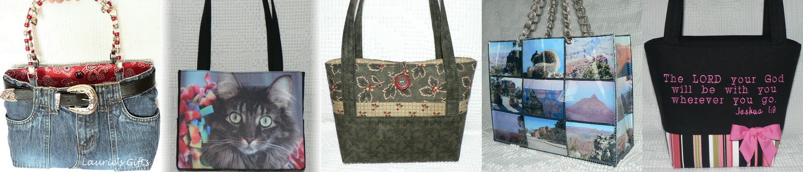 When I started my sewing business in 2005, I made only purses and accessories. I made recycled wrapper purses (2005-2008), photo purses from 2007 until the end of 2012 (when my printer guy retired), embroidered Scripture Purses (2007-2019), repurposed clothing purses, boutique-style fabric purses, and denim "patootie purses" made from recycled blue jeans, to name a few types. It was a lot of fun, and it kept me pretty busy. I made a LOT of unique purses that I sold in person at local shows, and on my original website.